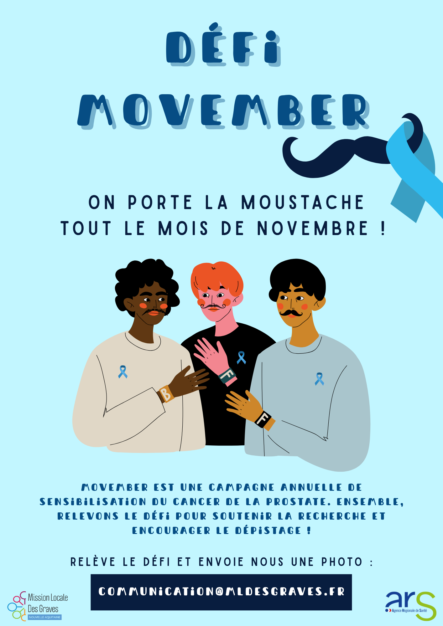 Tout au long du mois de novembre, la Mission Locale des Graves se mobilise pour le défi Movember, une campagne mondiale de sensibilisation aux cancers masculins, notamment celui de la prostate. L’objectif ? Faire parler de la santé des hommes, encourager le dépistage précoce et soutenir la recherche médicale. Pour l’occasion, nous invitons tous les […]