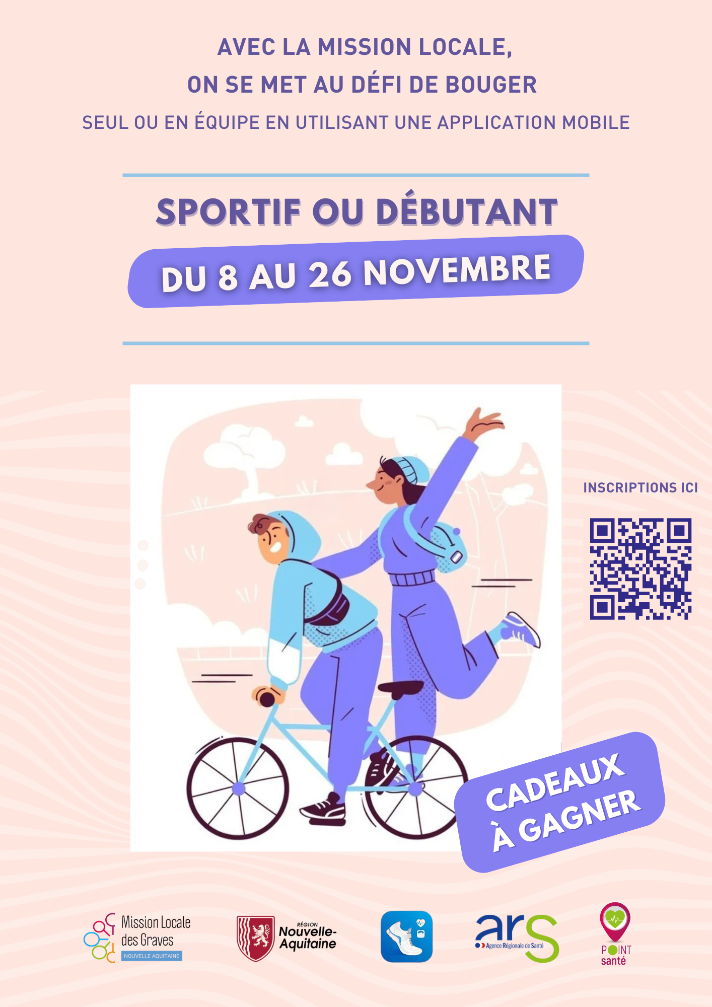 Du 8 au 26 novembre 2025, relevez le défi sportif organisé par la Mission Locale des Graves ! Que vous soyez sportif confirmé ou débutant, ce challenge est fait pour vous. L’objectif ? Bouger chaque jour, seul·e ou en équipe, grâce à une application mobile simple et ludique. Chaque pas compte : marche, course, vélo… […]