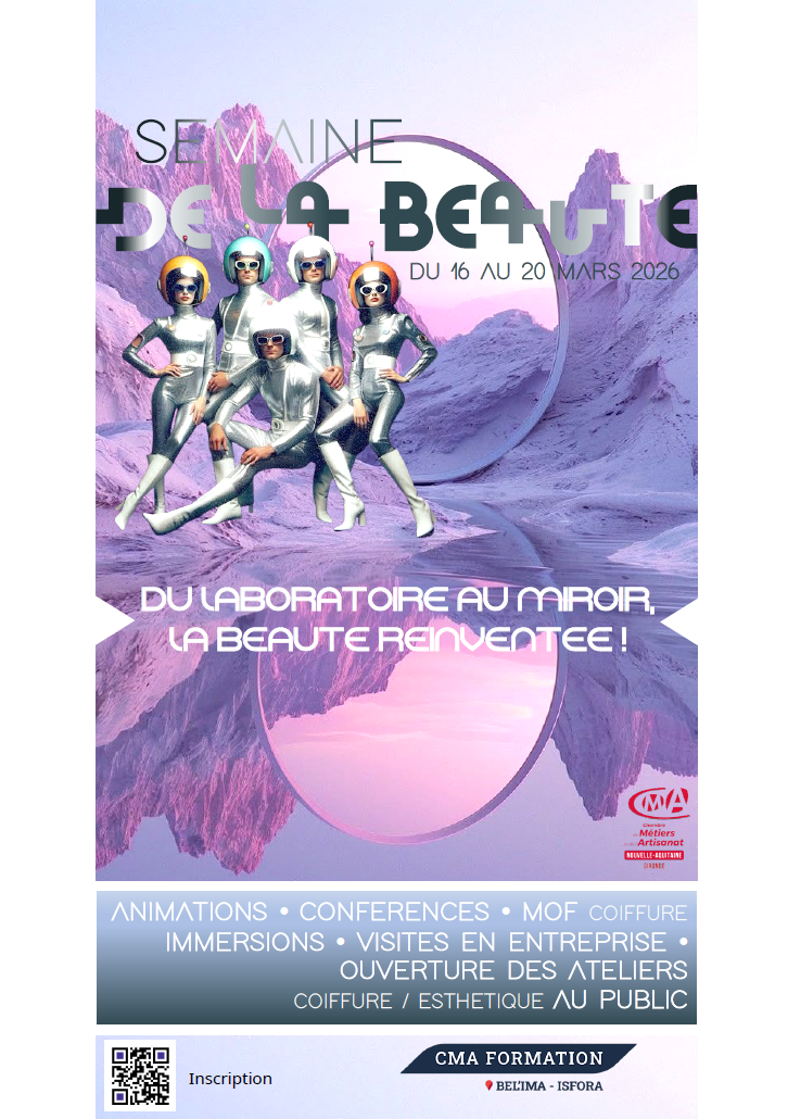 Du 16 au 20 Mars 2026 la CMA Nouvelle-Aquitaine organise la Semaine de la beauté. Dans le cadre de cette semaine, le centre de formation propose diverses activités dans l’objectif de découvrir les métiers de la coiffure et de l’esthétique à travers des immersions et des visites d’entreprise. Programmation : Mardi 17 Mars 2026 de […]